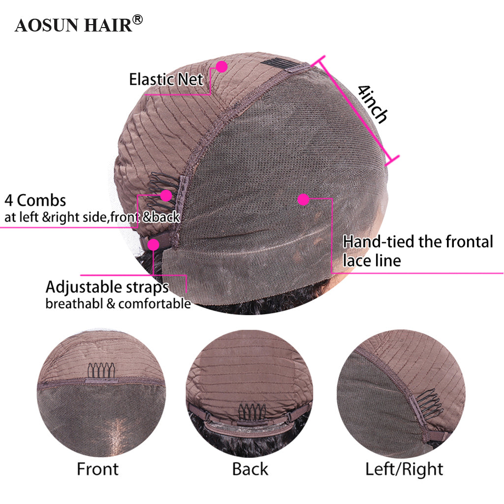 Aosun Curly Pixie Cut Wig For Black Women Human Hair Wigs Bob 13x4 Lace Wigs