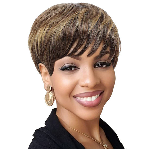 Color 4/30 Human Hair Short Wig Machine Made Wig With Bangs