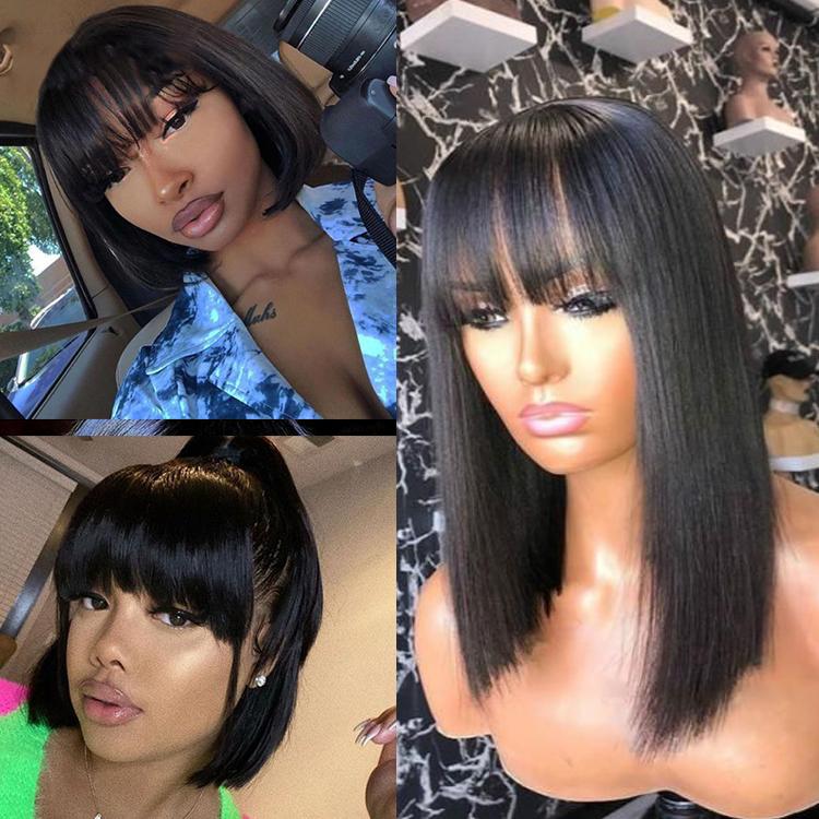 Silky Straight Human Hair 13x4 Transparent Full Frontal Lace Bob Wig With Bangs